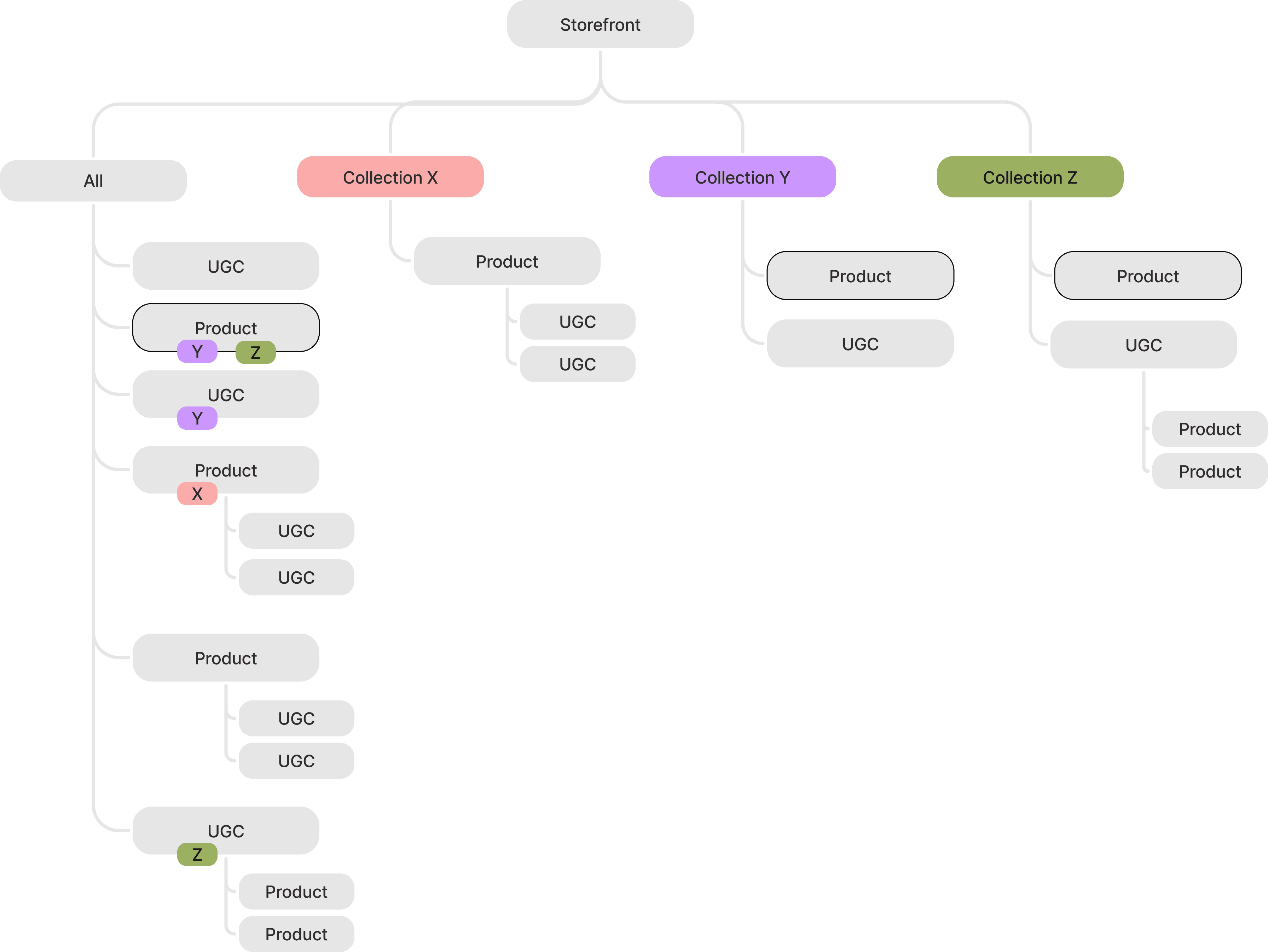 Default logic: The most confusing aspect arises when product cards and UGC cards are mixed together. So, what determines how things are shown? (Most recent? Most relevant?)