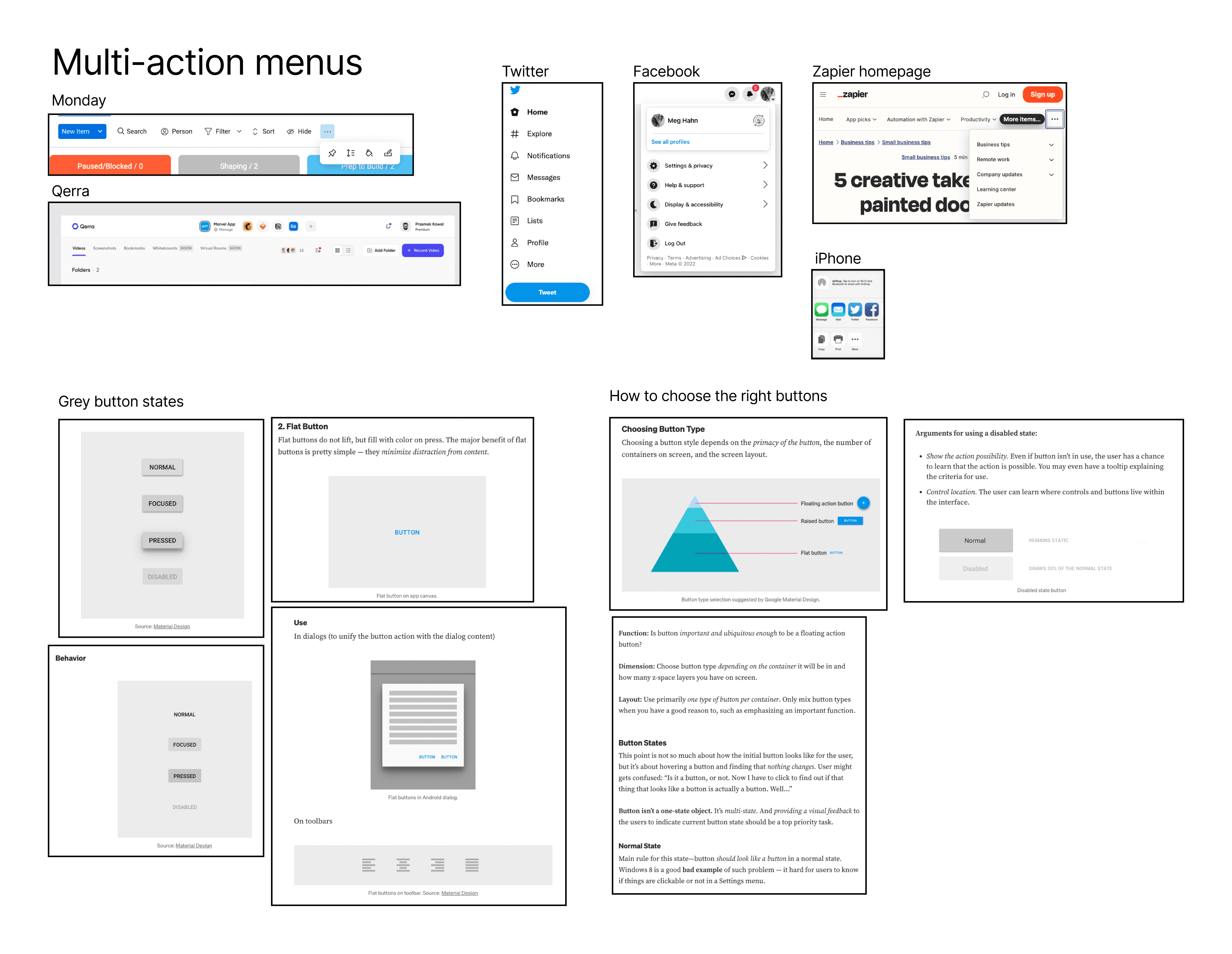 I gathered inspiration from various websites, including Google's Material Library, for button usage. Using these references, I brainstormed interactions and possible layouts for the 'message' button.