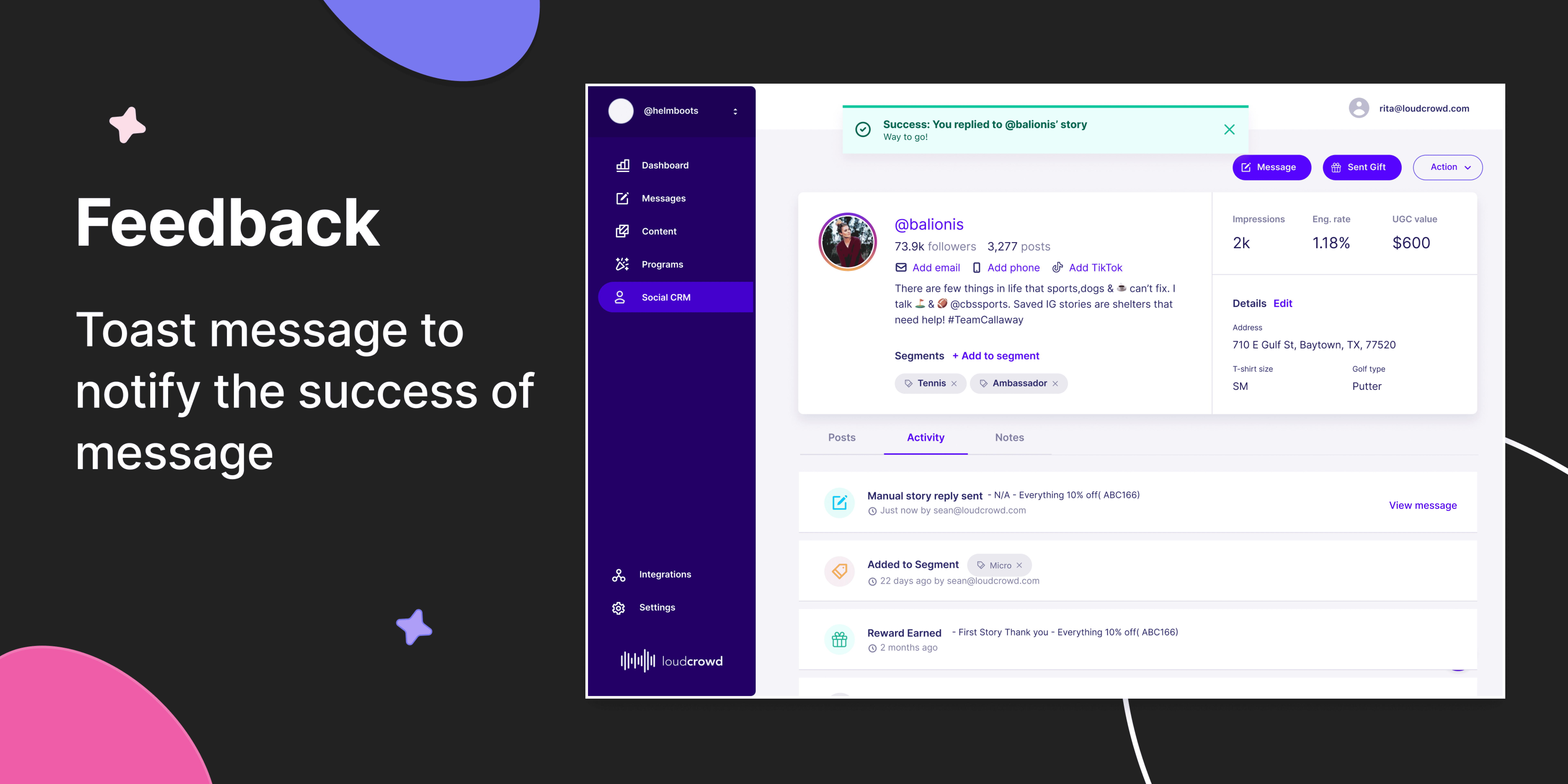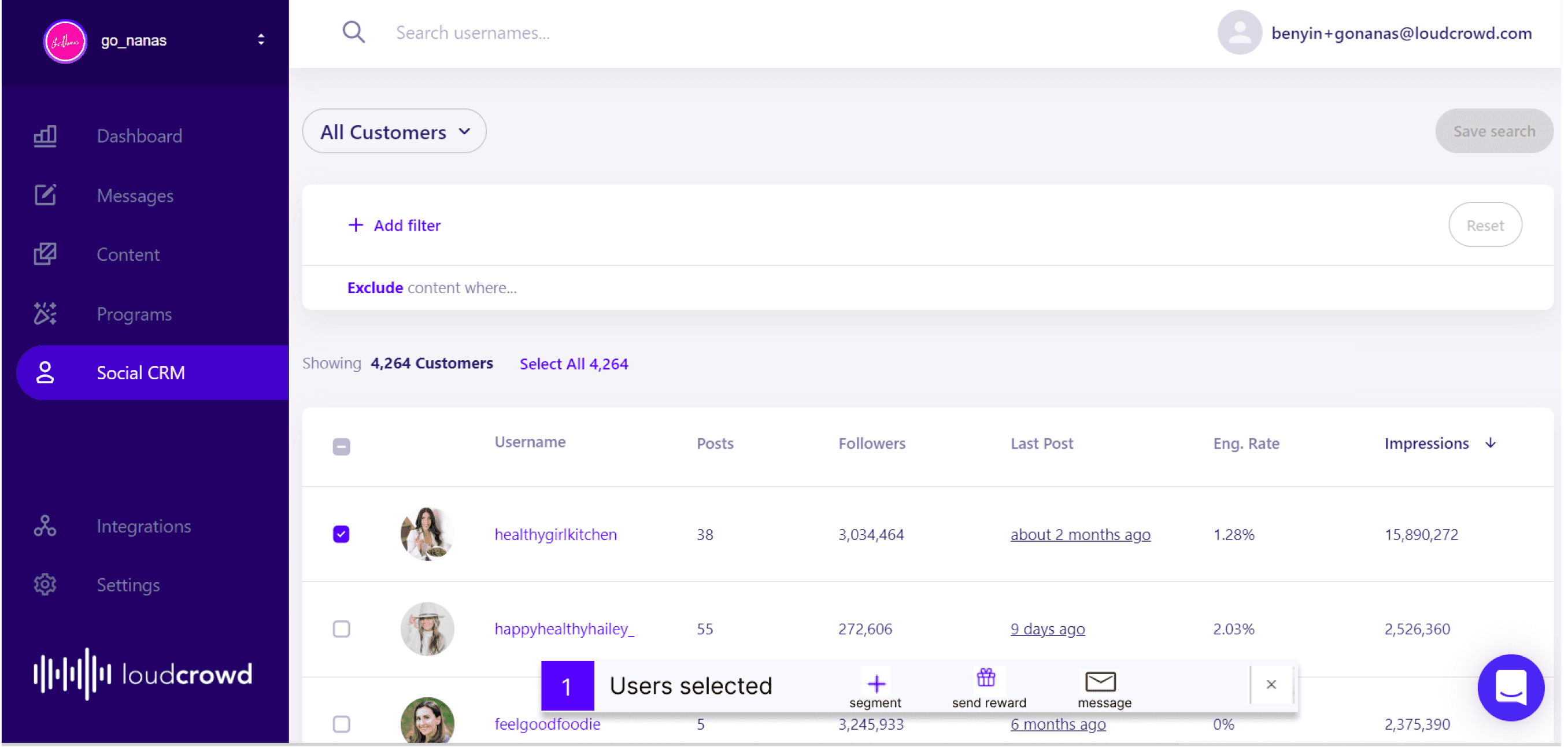 Since brands use influencer programs to retain customer loyalty and boost customer engagement, Loudcrowd is committed to giving brands the flexibility.