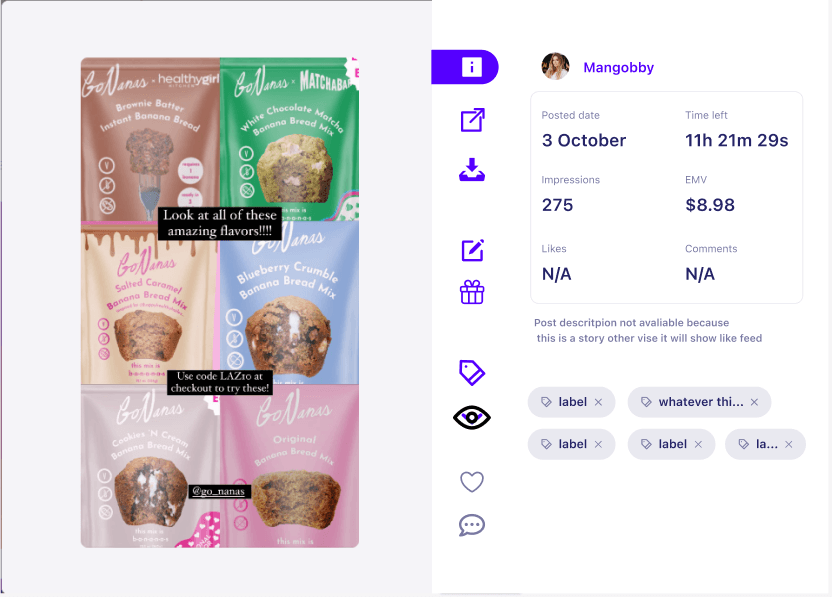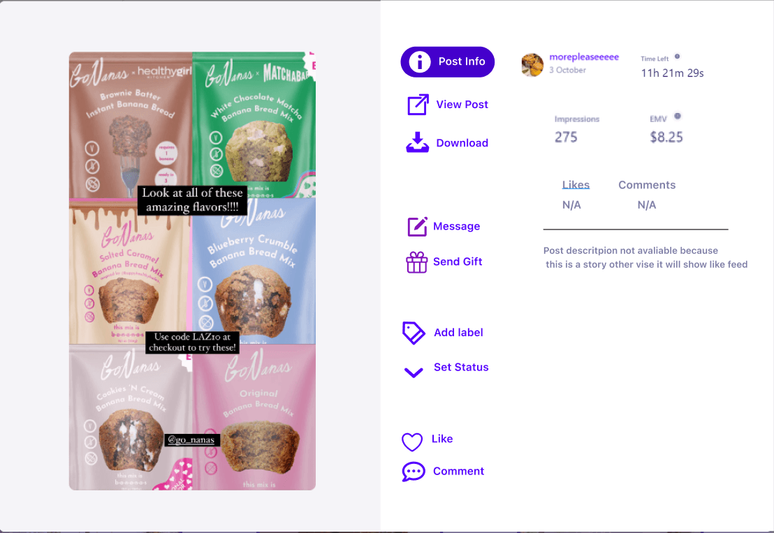 As a brand manager, I want to spot gift non-story posts for creators outside of the program so that I can reach out to other quality UGC creators.