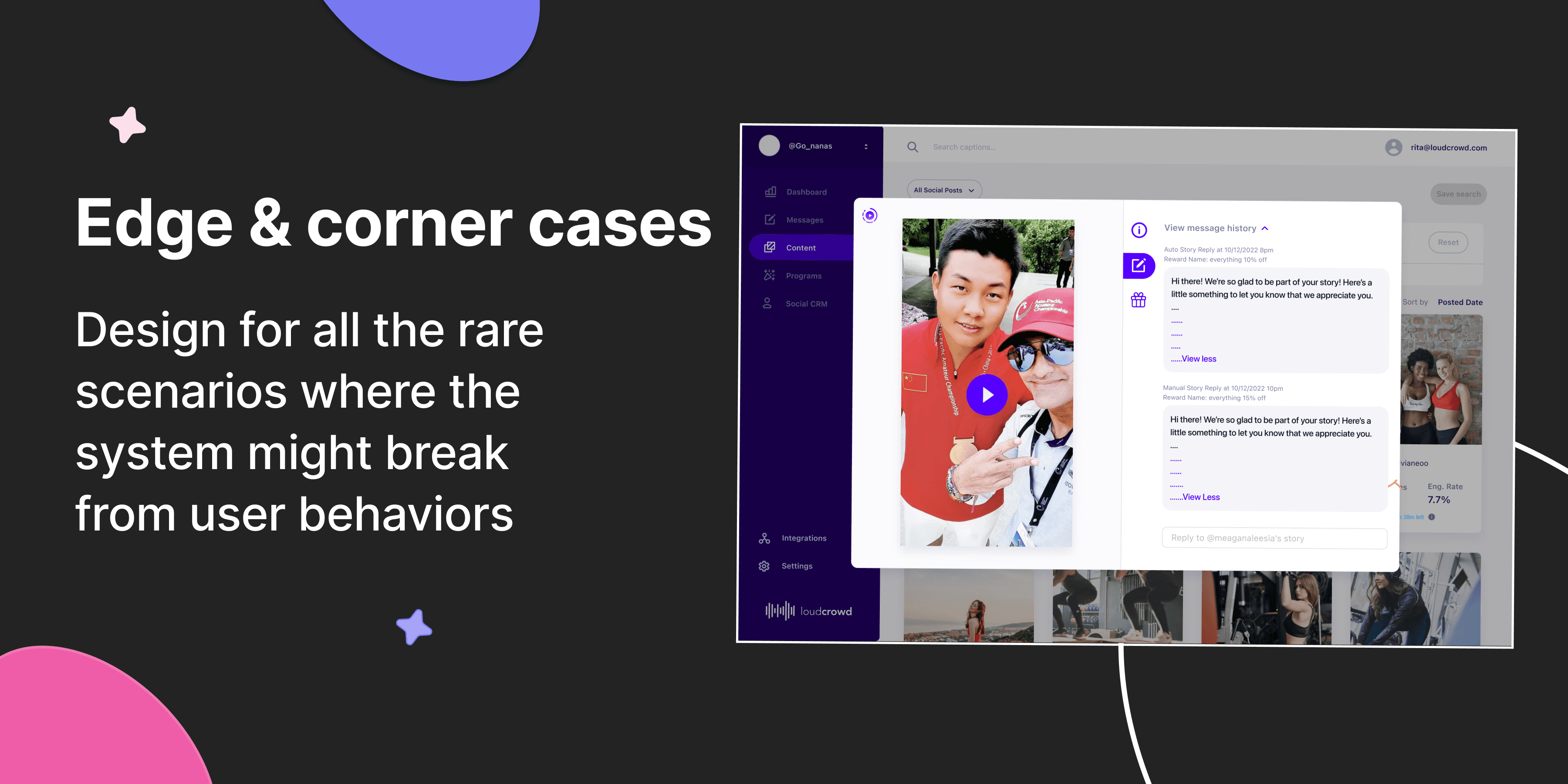 There’s no central place for a brand manager to send and manage their messages. They either have to DM from Instagram, send email or send SMS which is very inefficient. Furthermore, we want to avoid tedious setup and troublesome management experience as brand managers are less likely to communicate with program members.