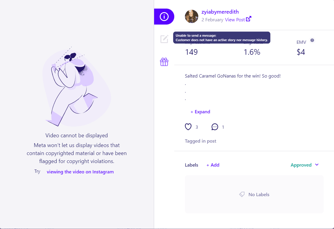 4 brands (GoNanas, Beatbox, BooHoo, Freedom Rave Wear)has expressed the need to manually reply to their influencers for various purposes. Brand managers need the ability to handle specific interaction and gifting scenarios that can’t be automated.