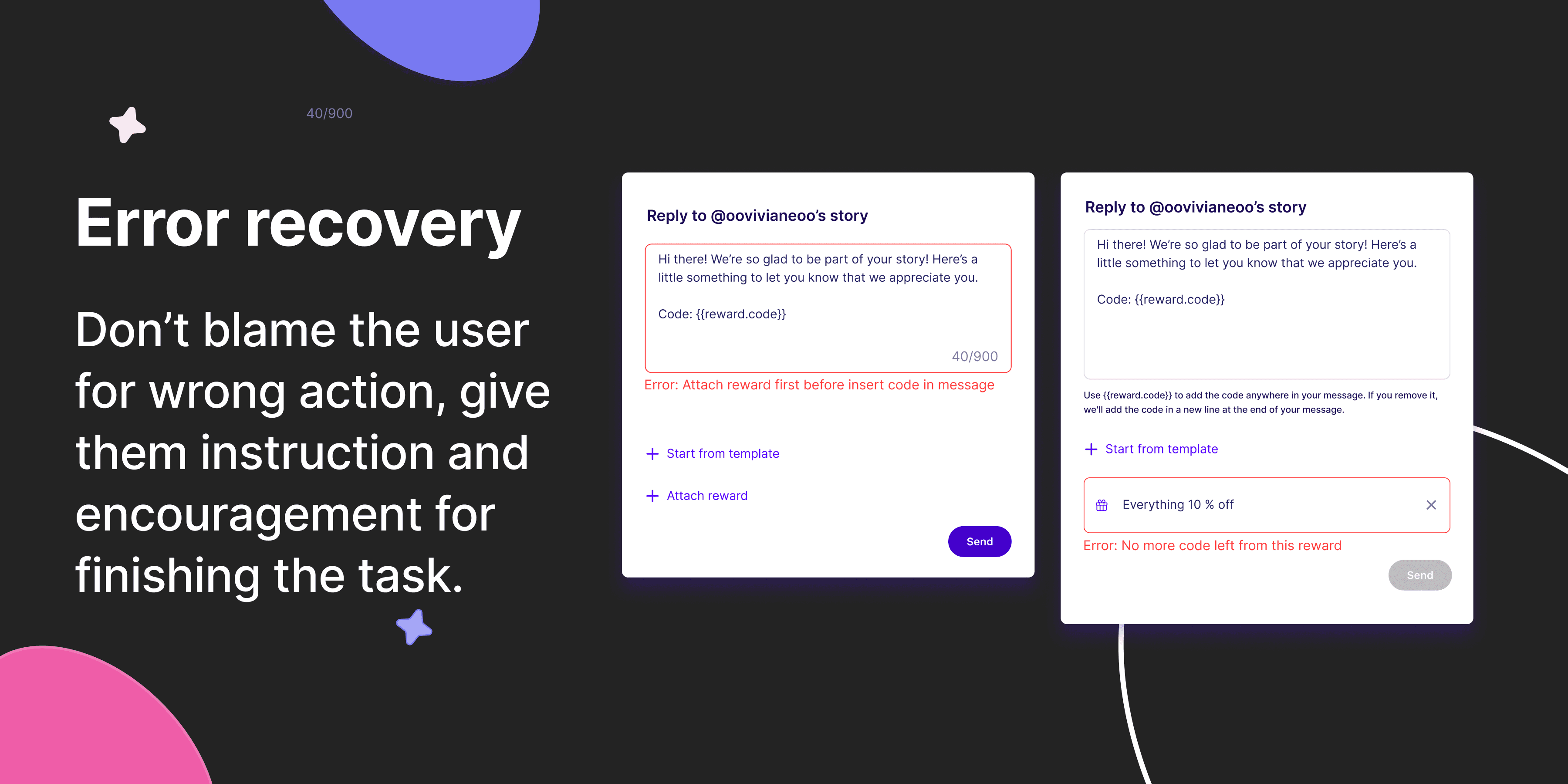 Use {{reward.code}} to add the code anywhere in your message. If you remove it, we'll add the code in a new line at the end of your message.