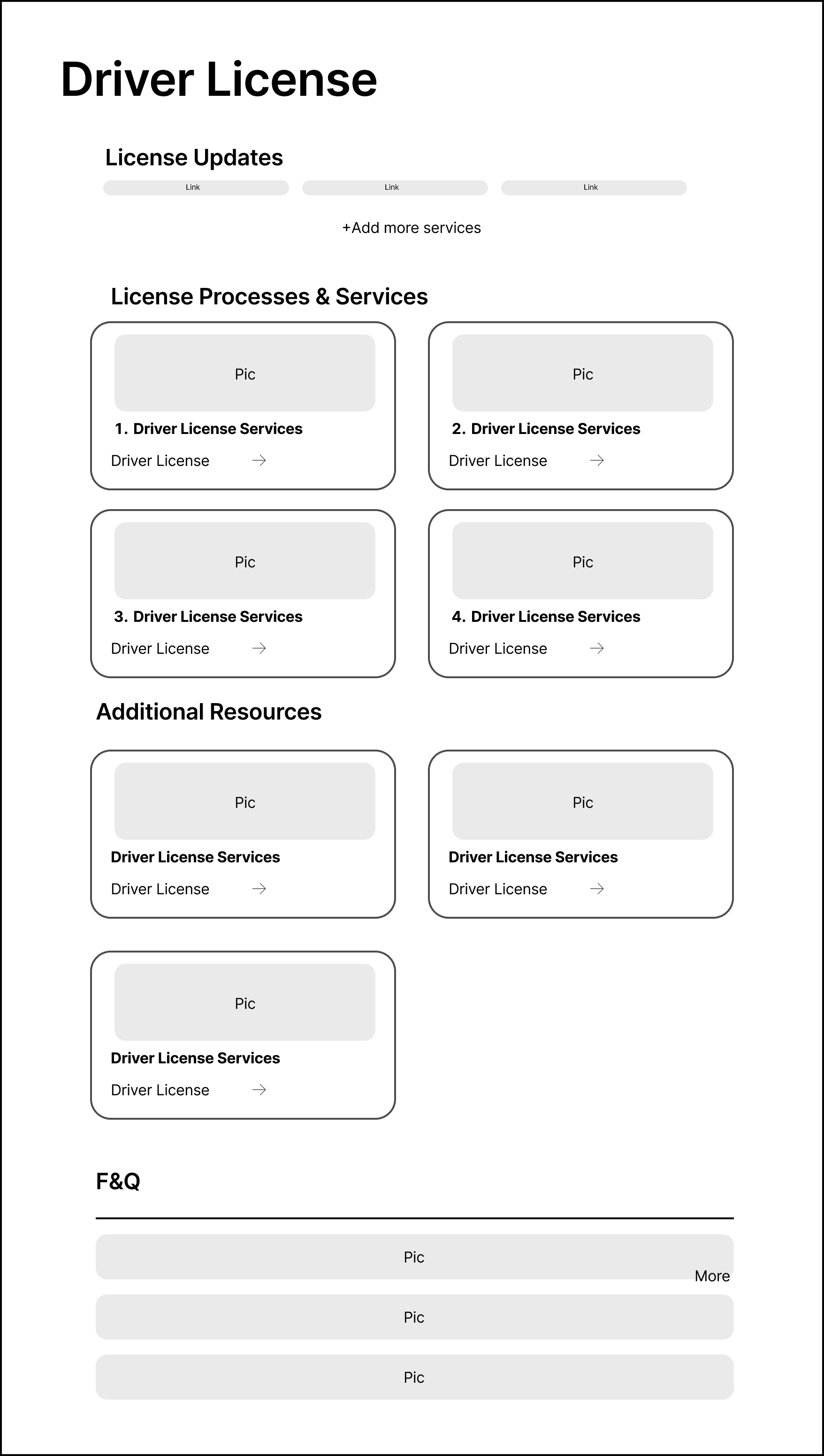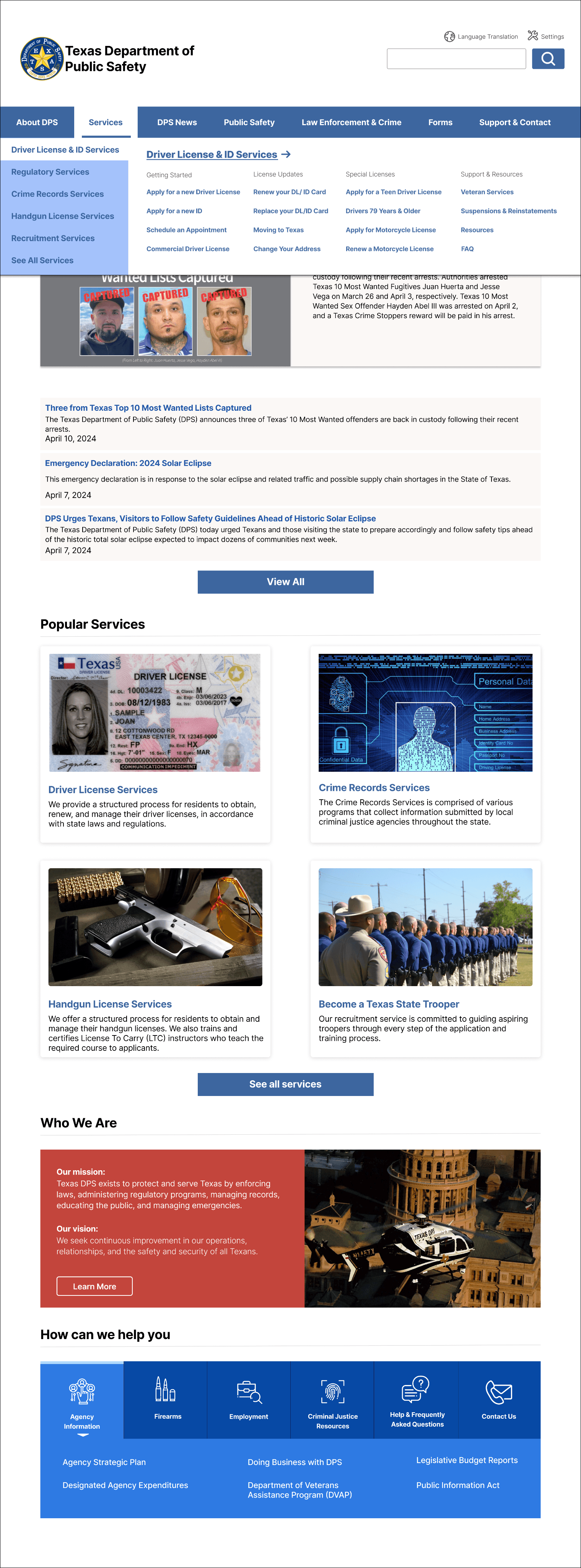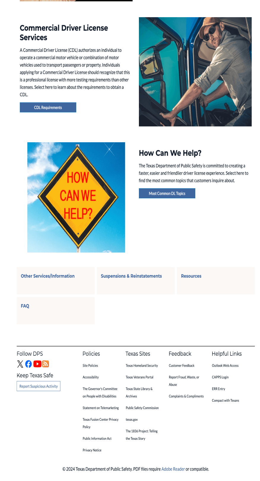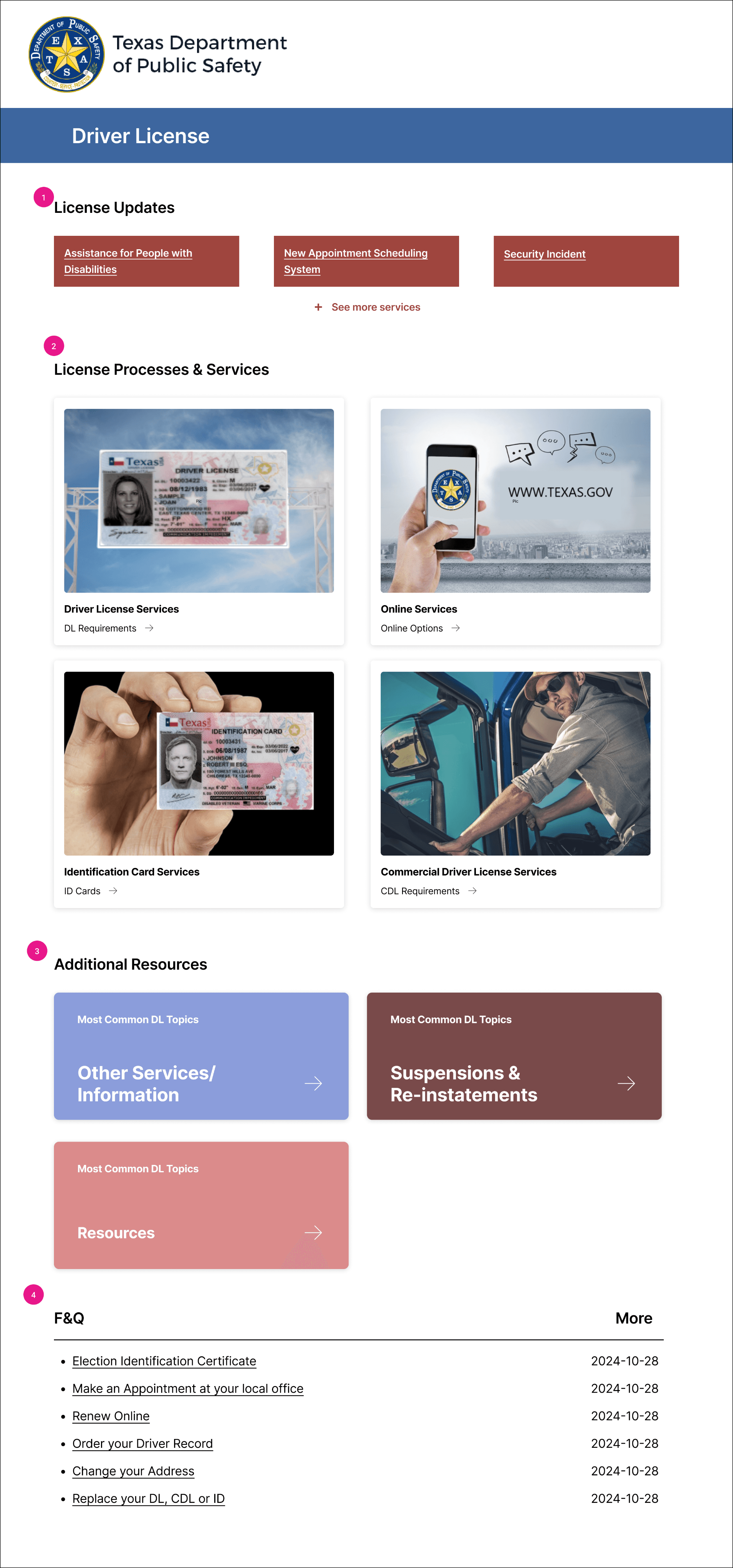 "Driver License Services," "Online Services," "Identification Card Services," and "Commercial Driver License Services" represent generic services that are not subject to frequent changes.