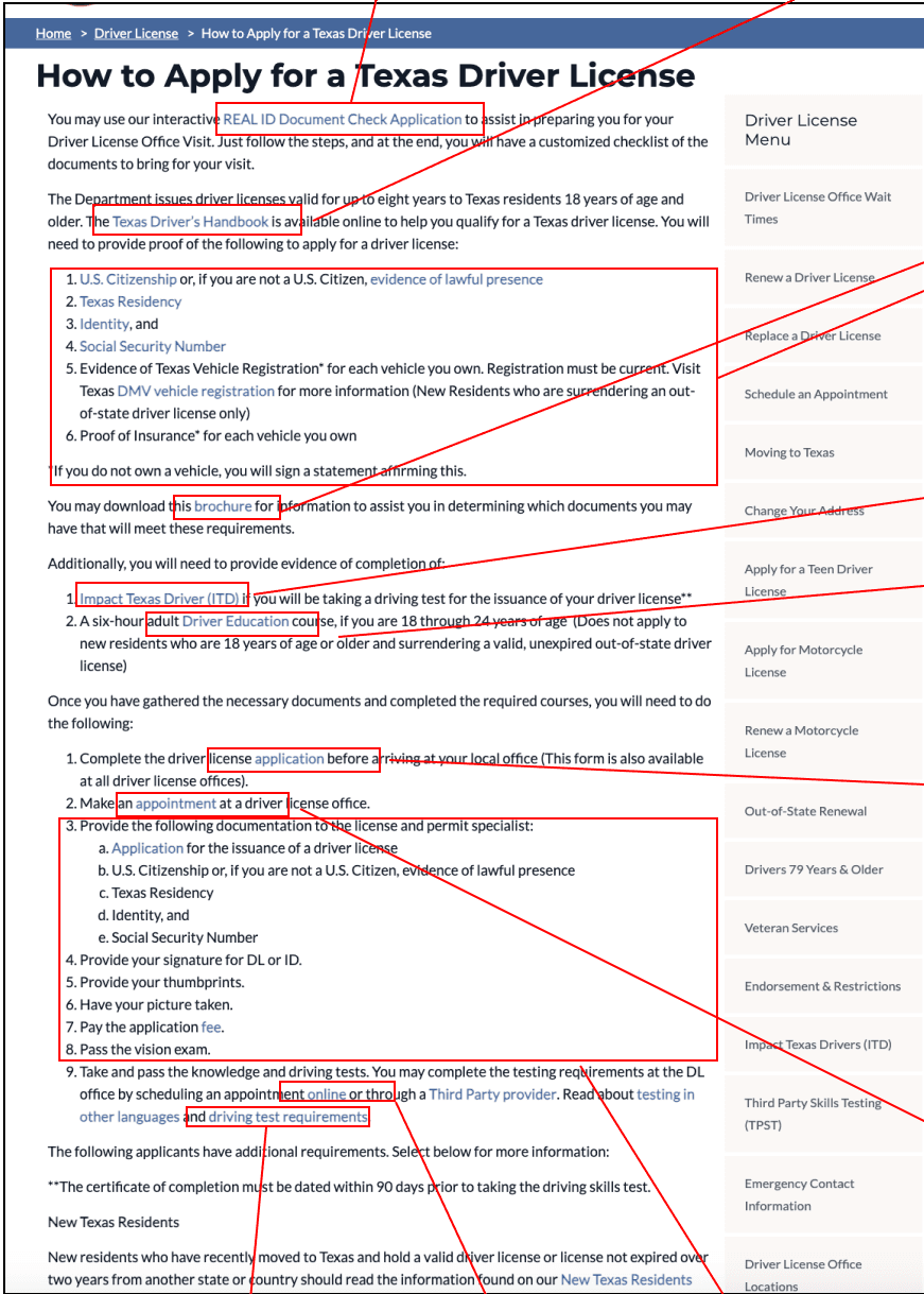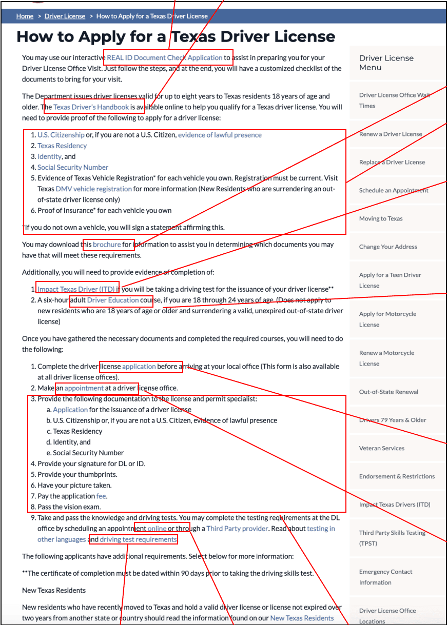 The website is unclear what this the essentials in the “driver’s license” page. There are too many distraction and unnecessary elements.