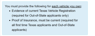 Texas Vehicle Registration and Proof of insurance