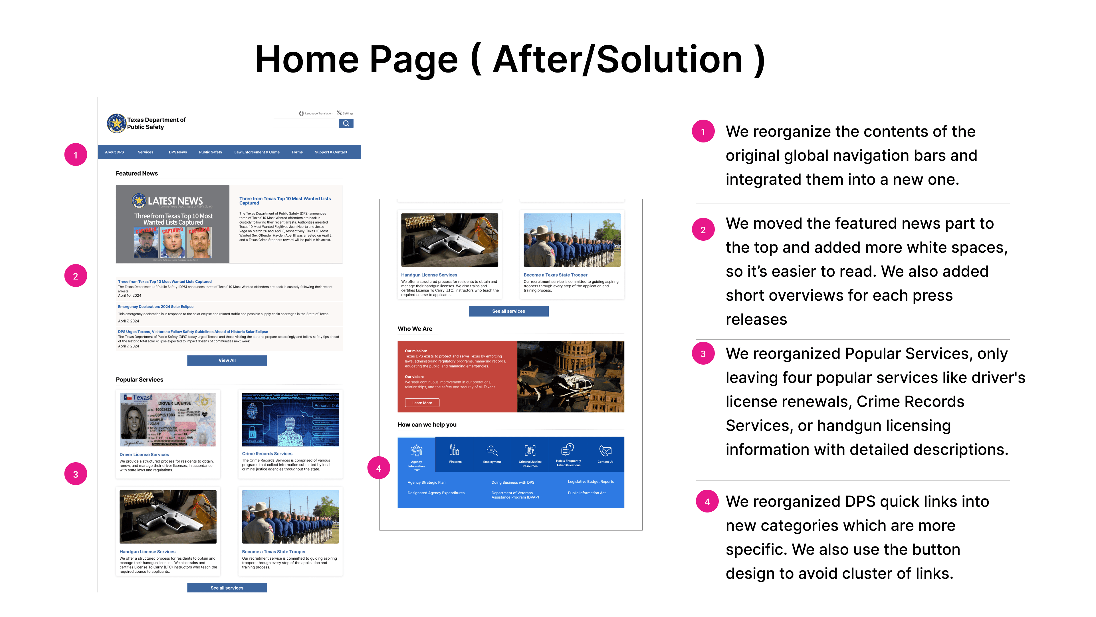 The original website uses very vague labels like “general information” and “popular resources”. All the links are cluttered, making it hard to read.